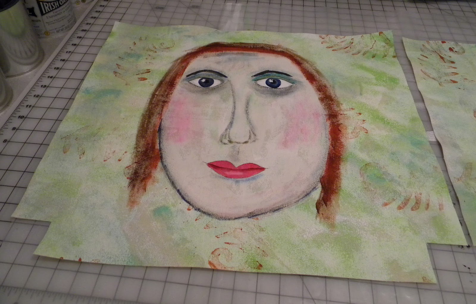 In the same manner as the thank you card made last week, a shape for the face was roughly painted in.